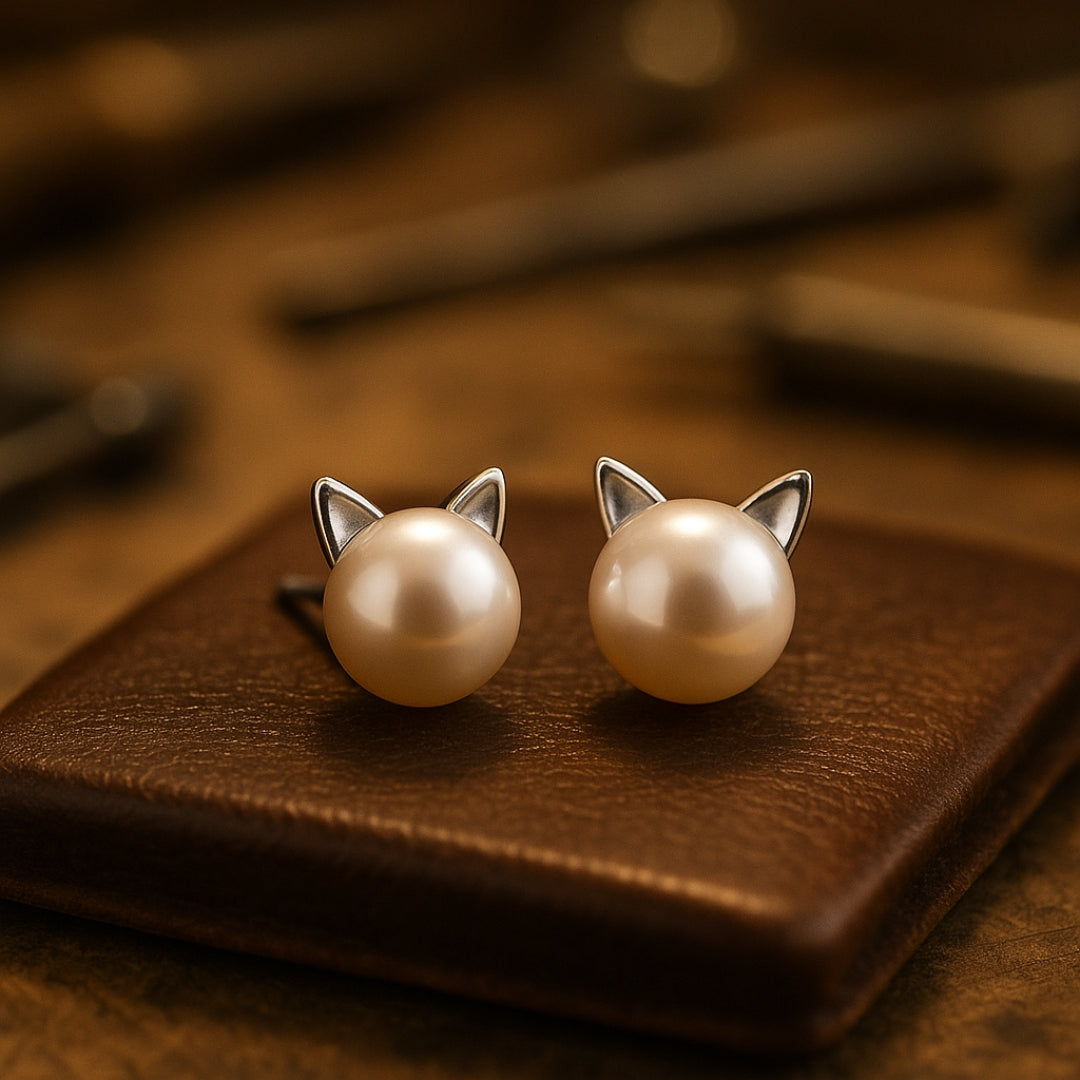Pearl Stud Kitty Earrings
